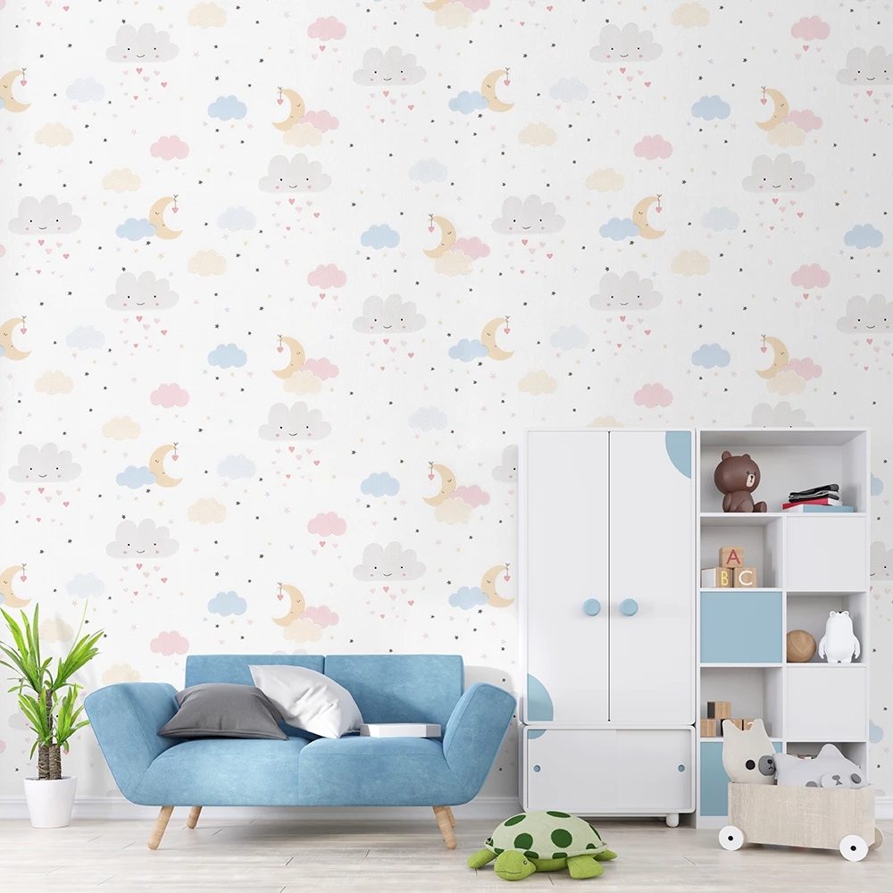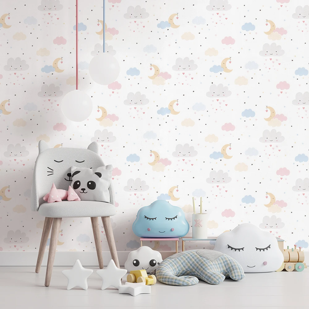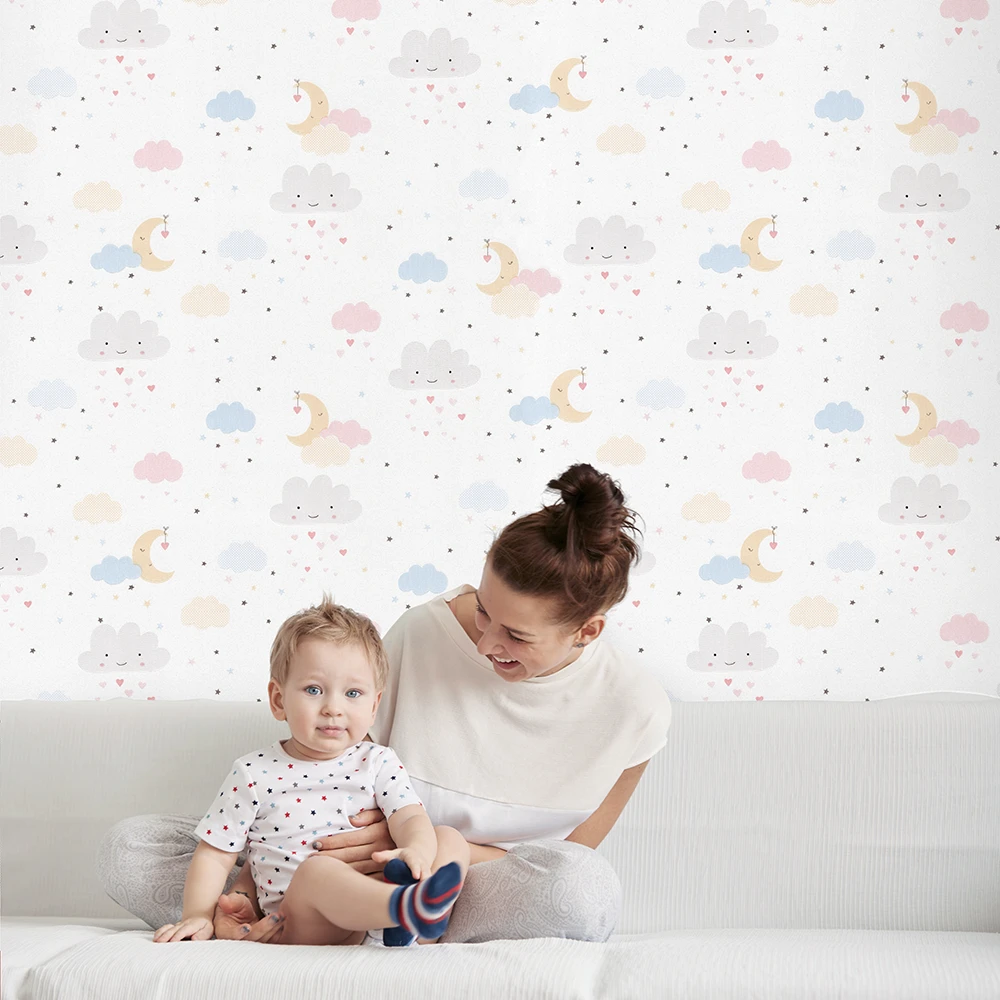 کاغذ دیواری کودک طرح آسمان ابری | سفید کد 12025 پمپو