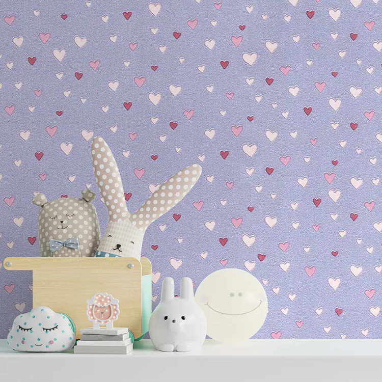 کاغذ دیواری کودک طرح قلبی | بنفش کد 12020 پمپو