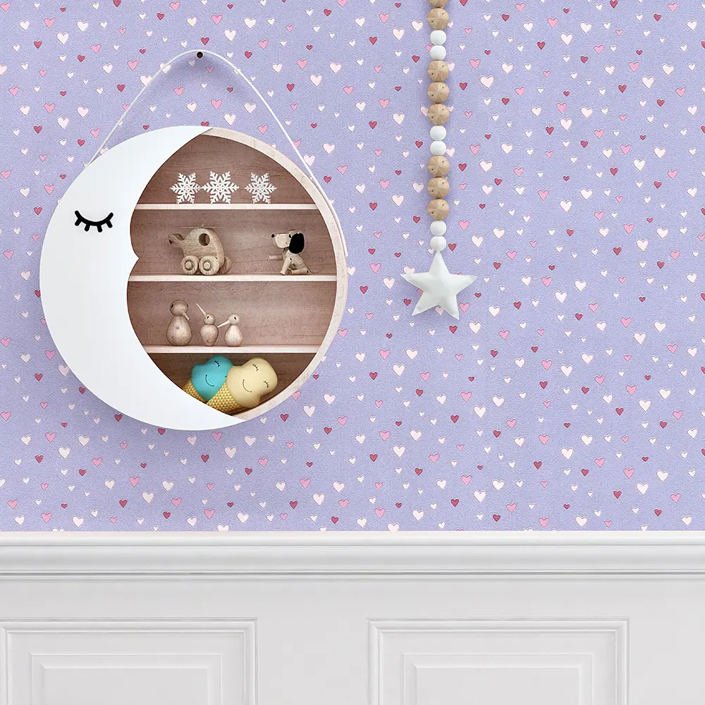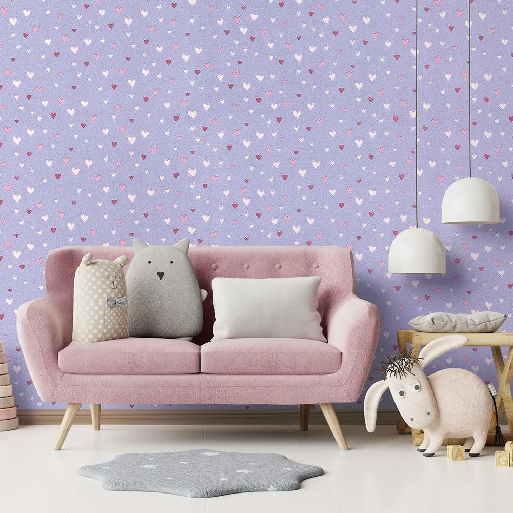 کاغذ دیواری کودک طرح قلبی | بنفش کد 12020 پمپو