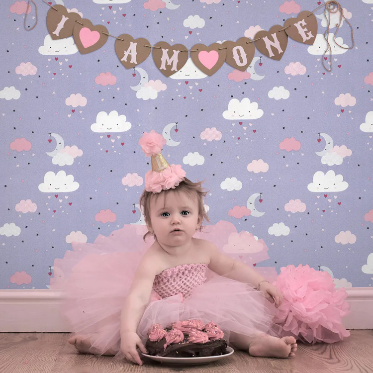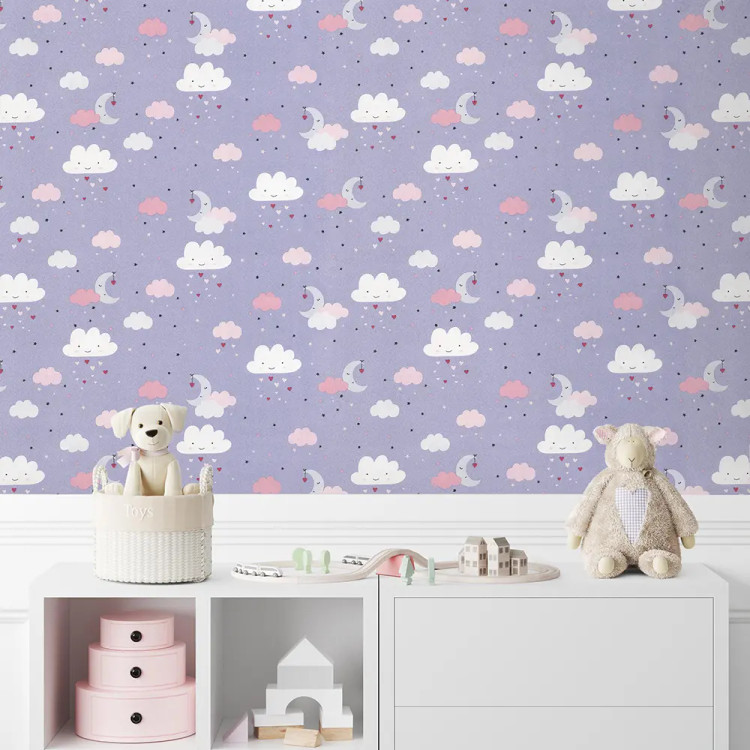 کاغذ دیواری کودک طرح آسمان ابری | بنفش کد 12017 پمپو