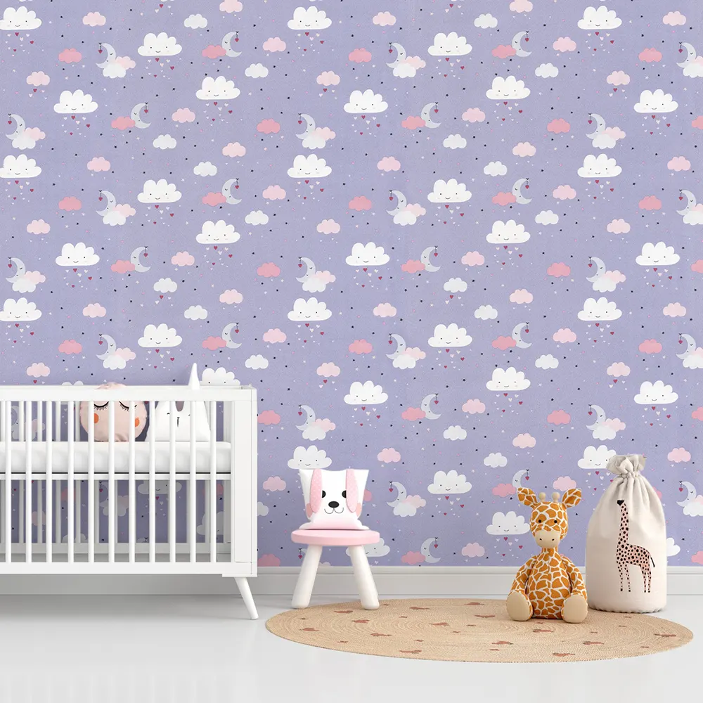 کاغذ دیواری کودک طرح آسمان ابری | بنفش کد 12017 پمپو