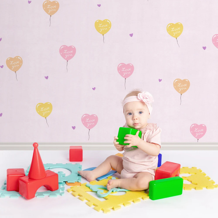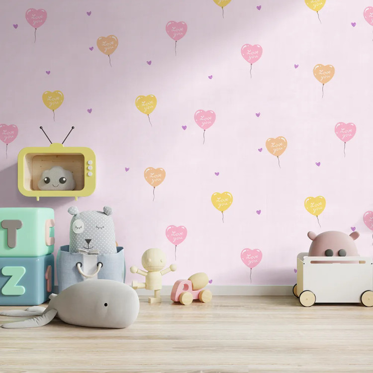 کاغذ دیواری کودک طرح بادکنک های قلبی | صورتی کد 12015 پمپو