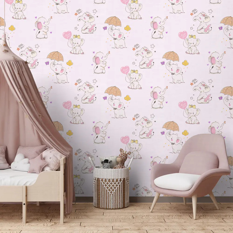 کاغذ دیواری کودک طرح فیل های کوچک | صورتی کد 12013 پمپو