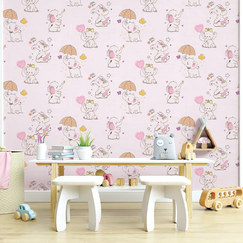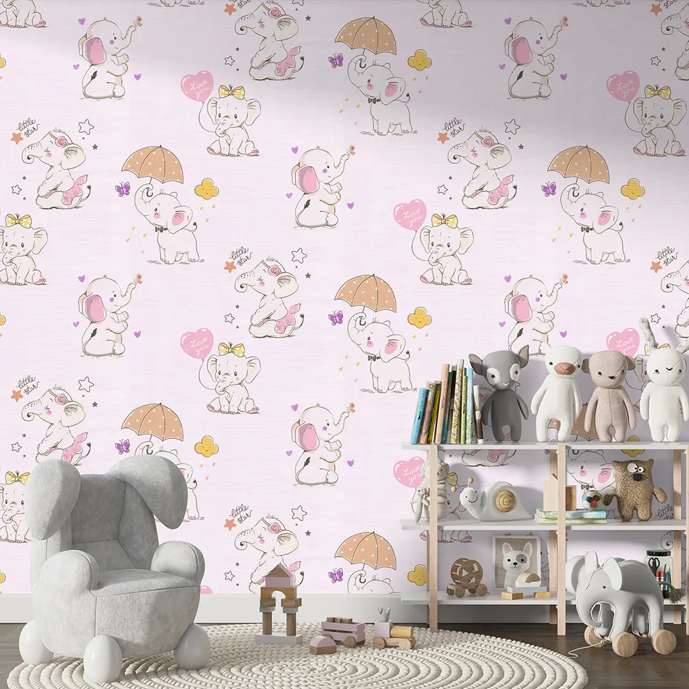 کاغذ دیواری کودک طرح فیل های کوچک | صورتی کد 12013 پمپو