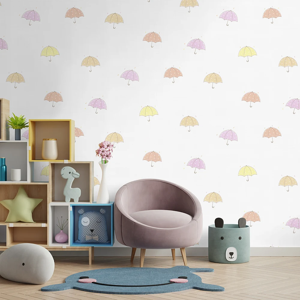 کاغذ دیواری کودک طرح چتر های رنگی کد 12012 پمپو