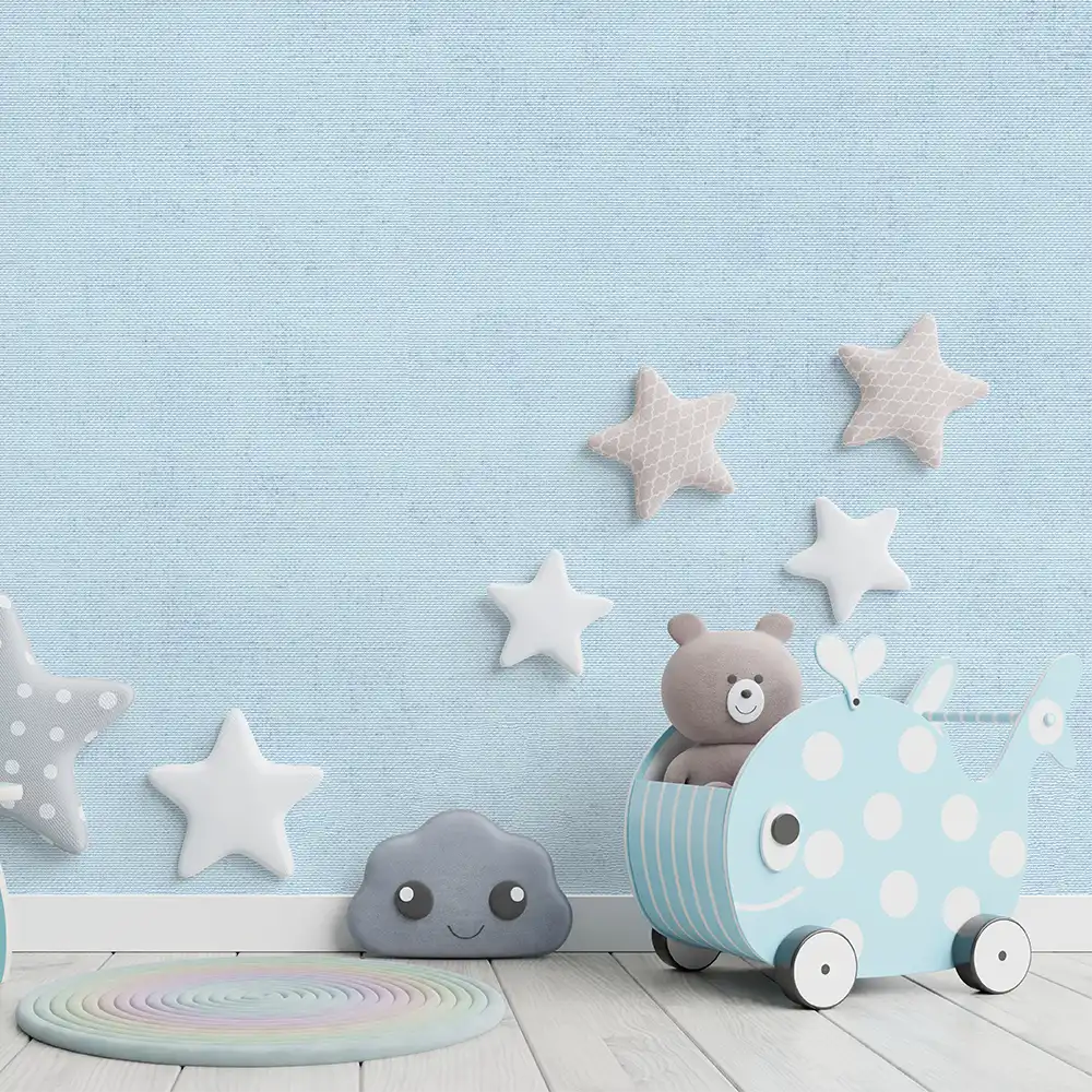 کاغذ دیواری کودک طرح ساده | آبی کد 12002 پمپو