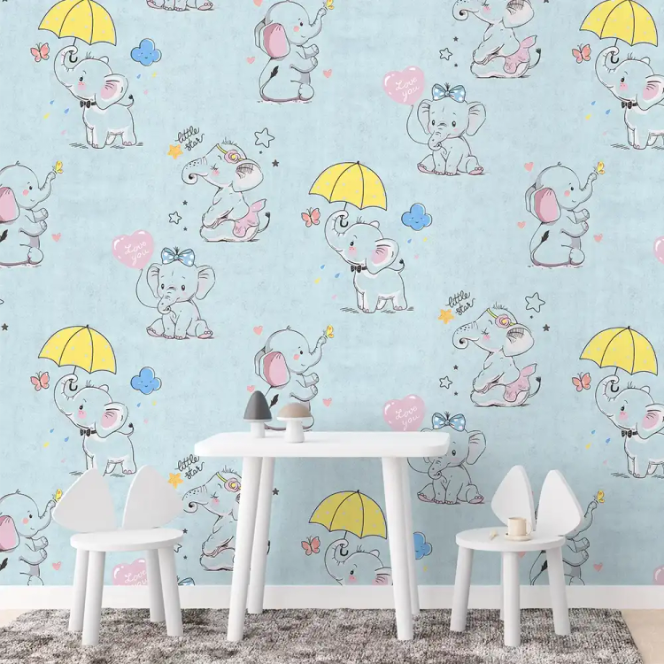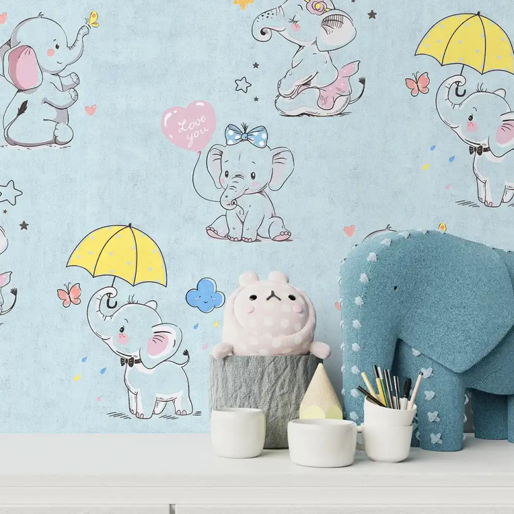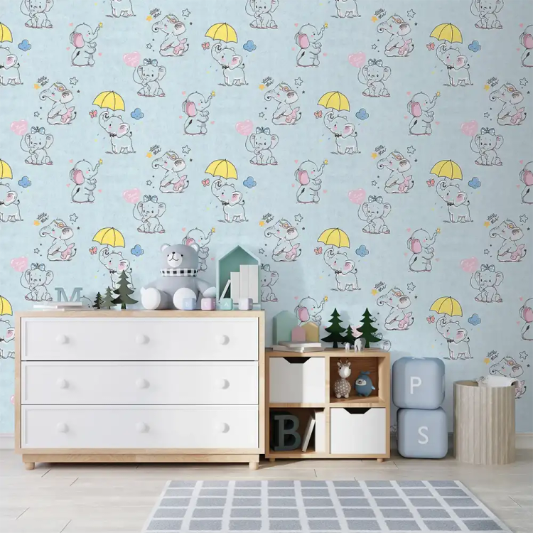 کاغذ دیواری کودک طرح فیل کوچولوها | آبی کد 12001 پمپو