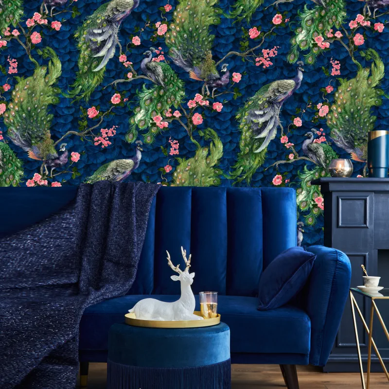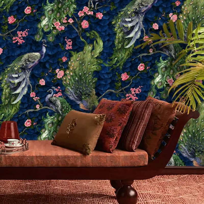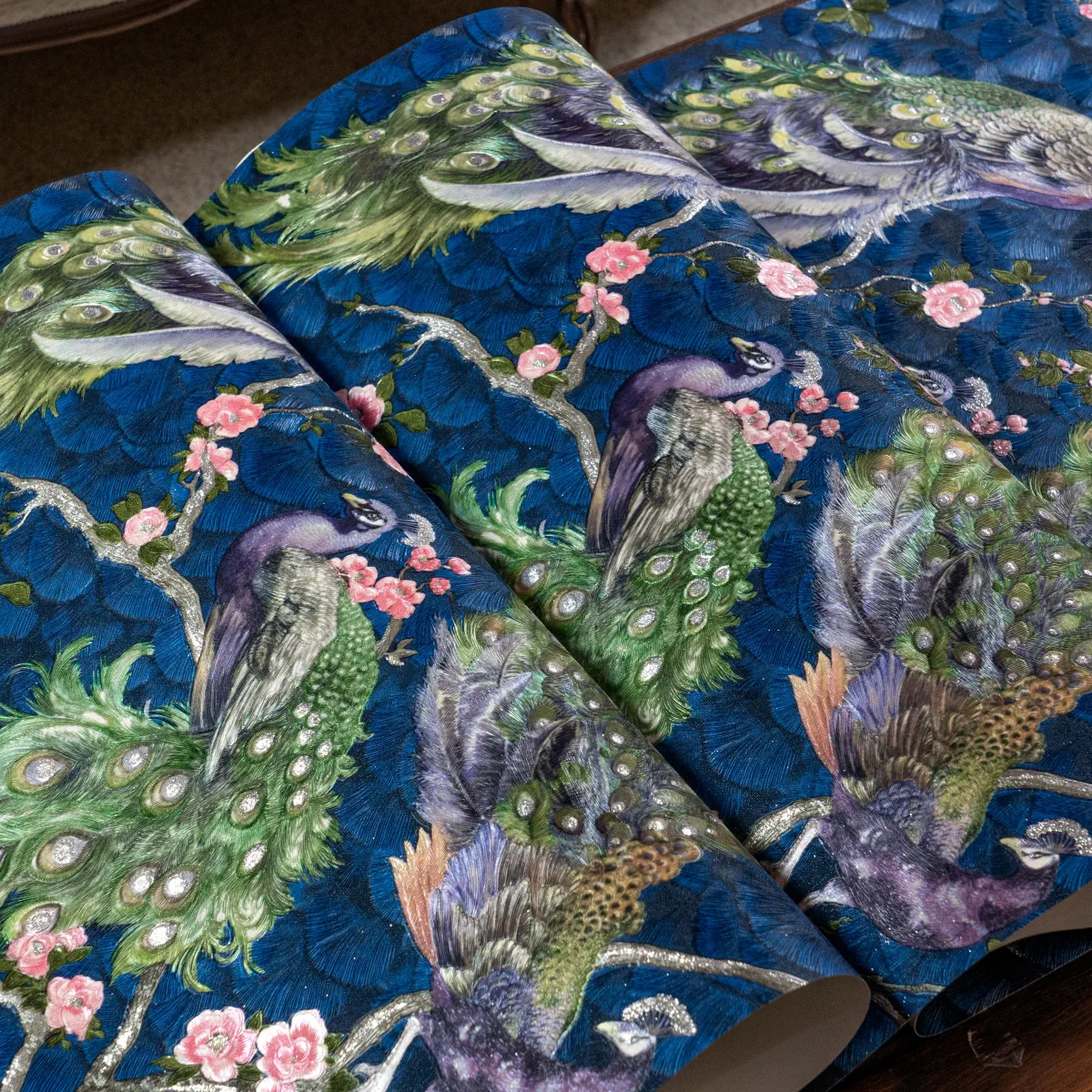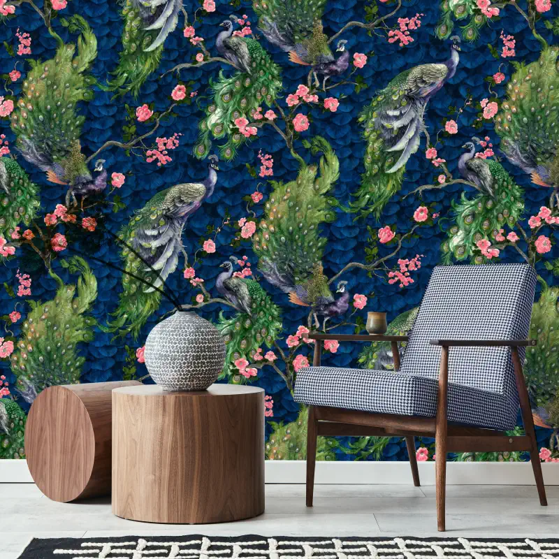 کاغذ دیواری طرح طاووس کد ۷۱۳۰ پلوتونیوم