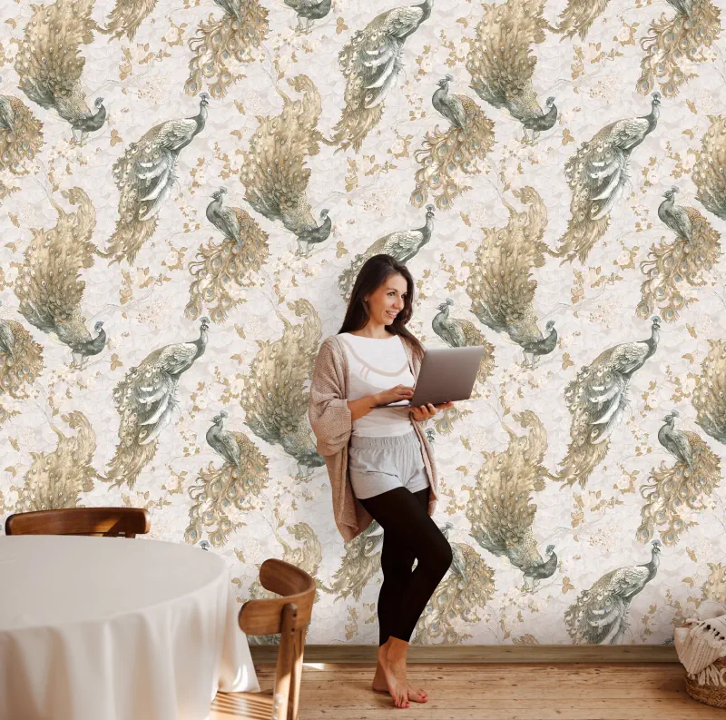 کاغذ دیواری طرح طاووس کد ۷۱۲۸