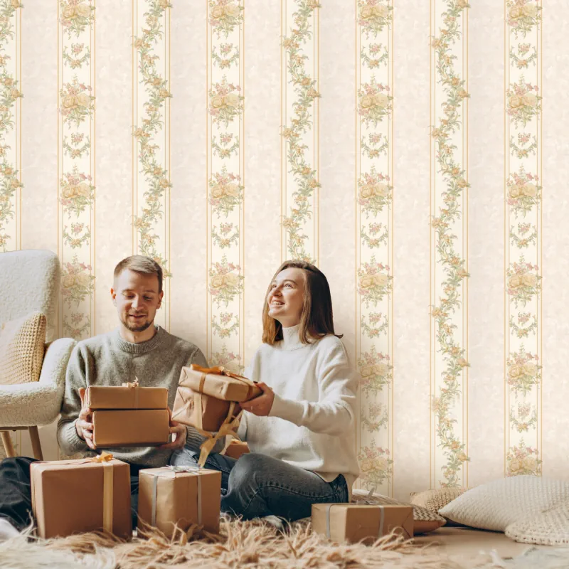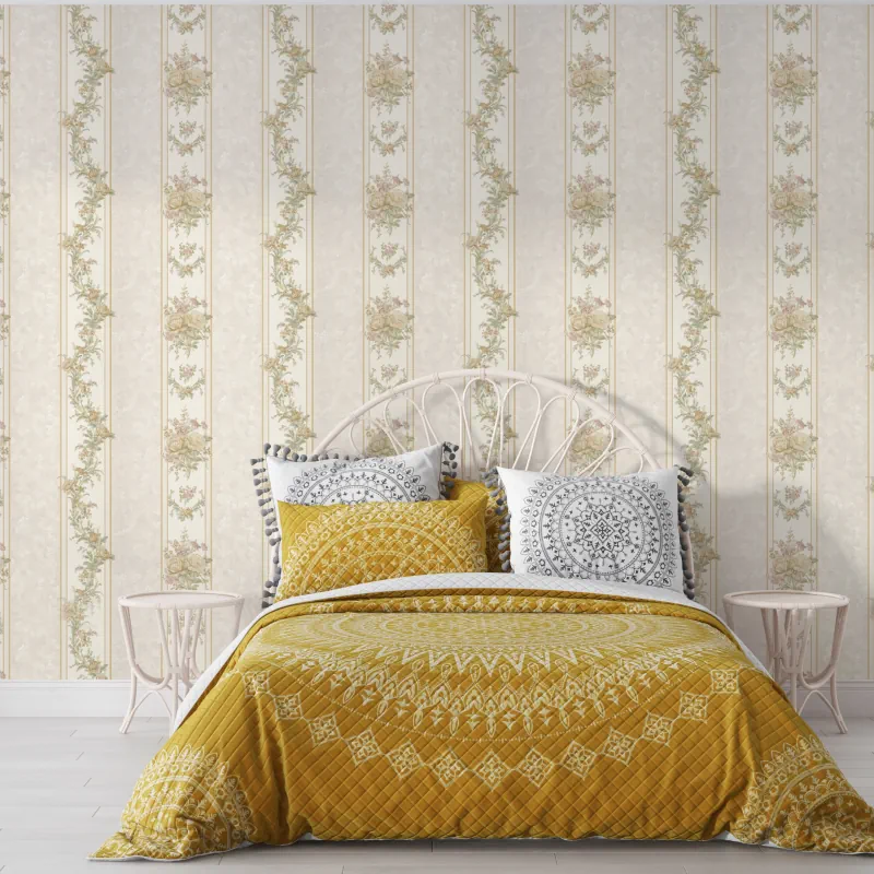 کاغذ دیواری طرح راه راه گلدار کد ۷۱۲۵ پلوتونیوم