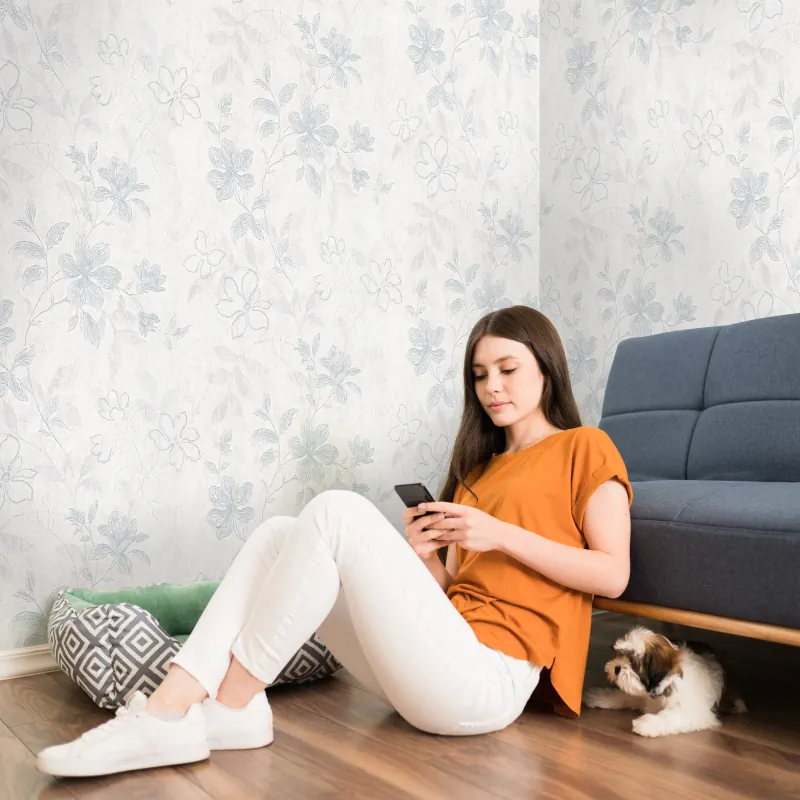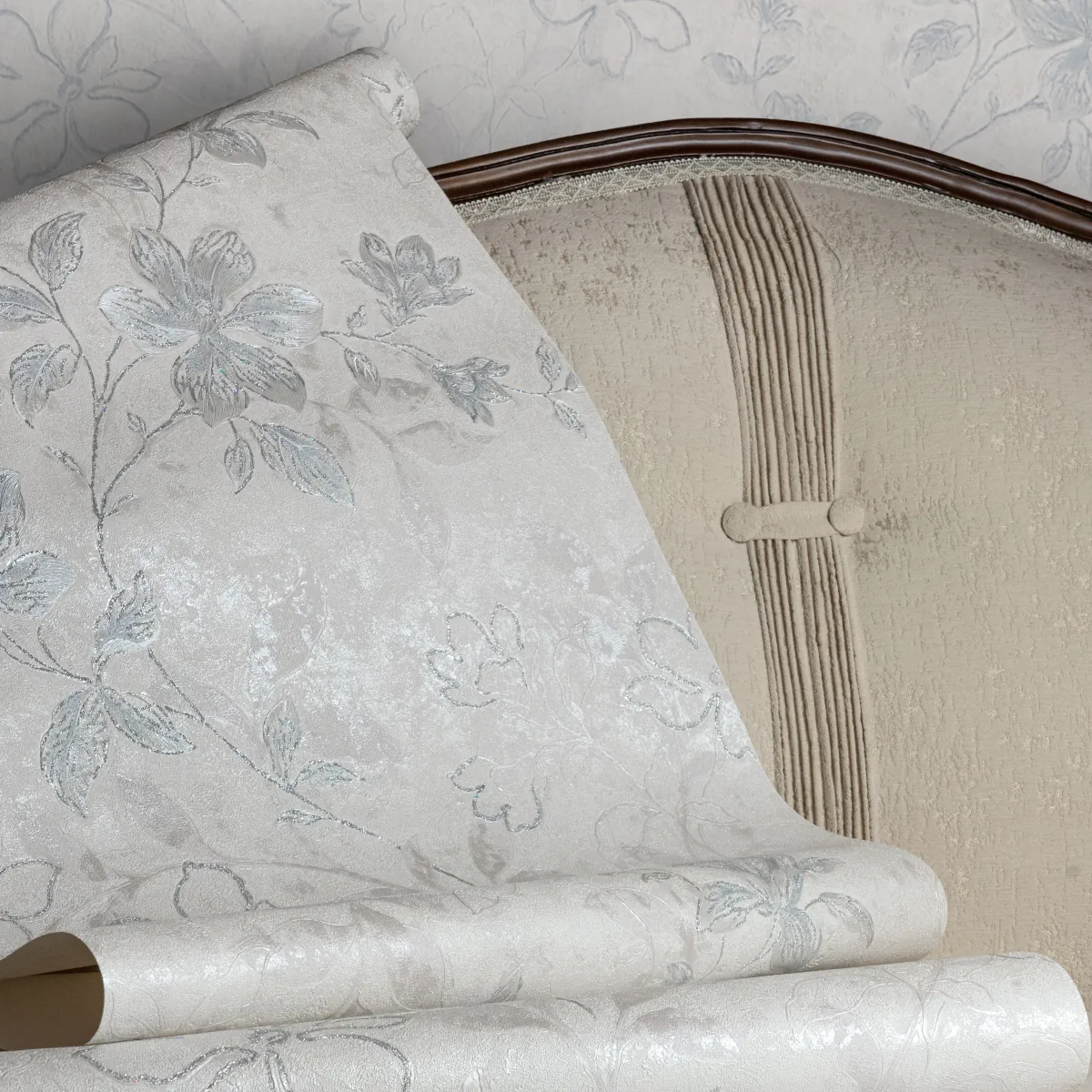کاغذ دیواری طرح گلدار شاخ و برگ کد ۷۰۹۲ پلوتونیوم