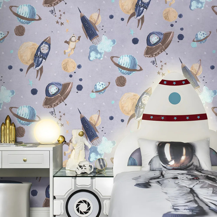 کاغذ دیواری کودک طرح کهکشان و فضانورد | چند رنگ کد 12107 پمپو
