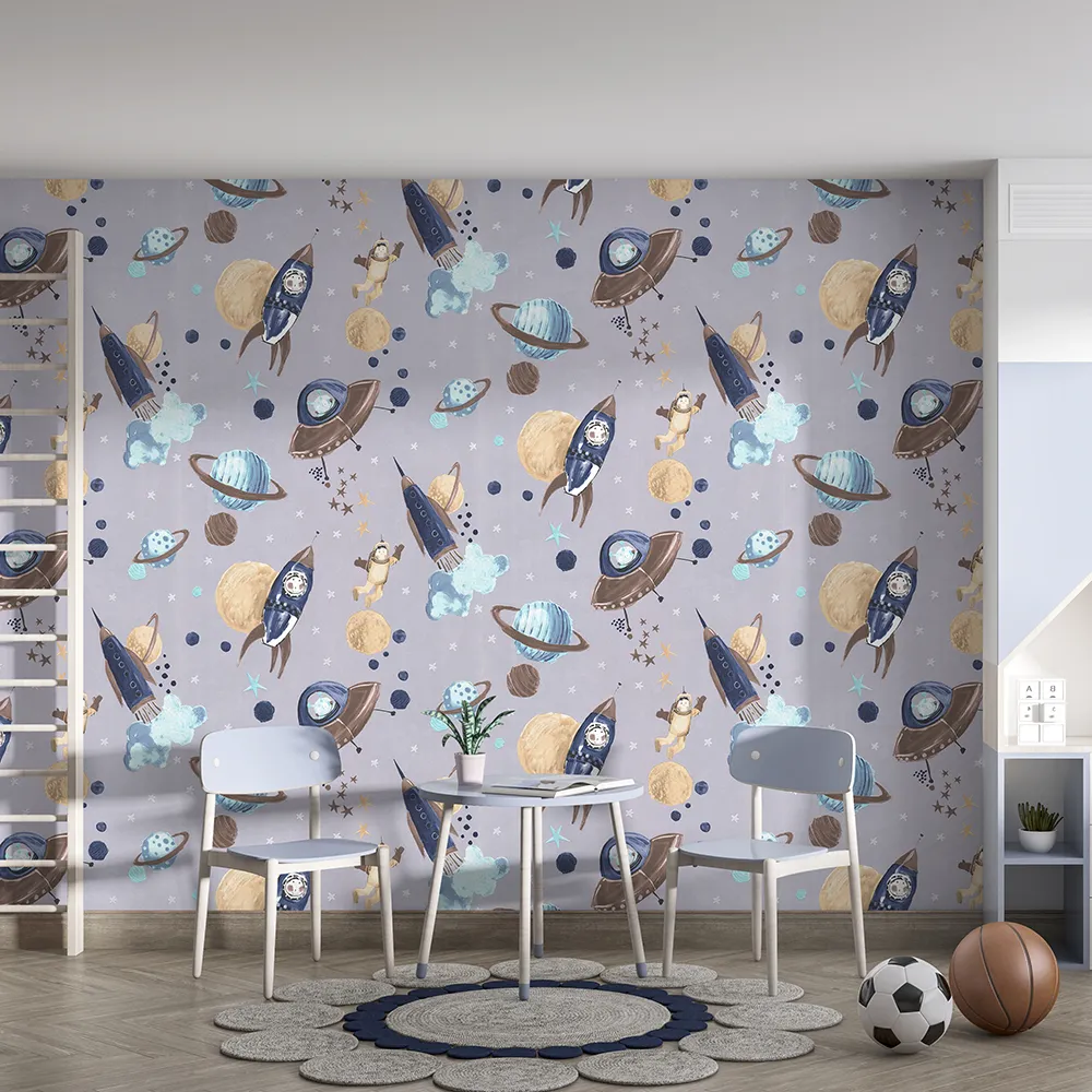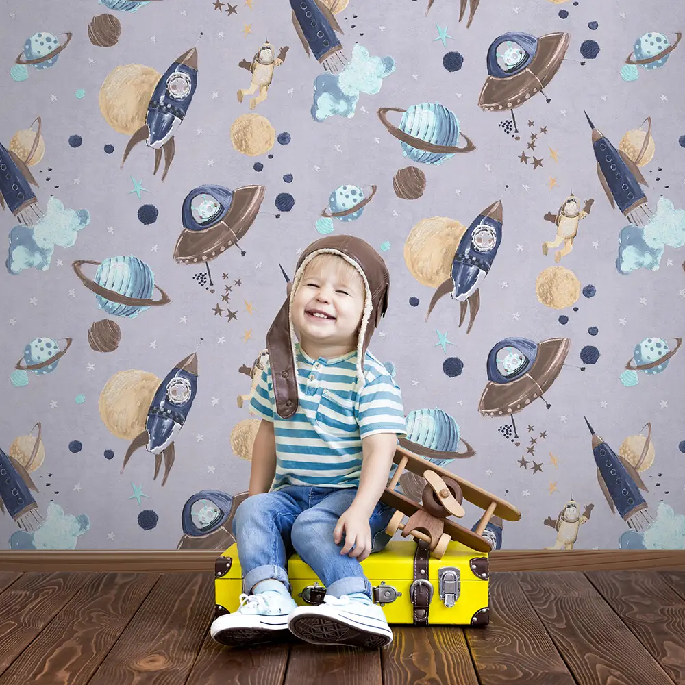 کاغذ دیواری کودک طرح کهکشان و فضانورد | چند رنگ کد 12107 پمپو