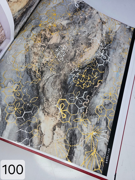 - ویژگی بصری: جلوهای از ترکیب هنر مدرن و کلاسیک، با تضاد رنگی جذاب بین پسزمینه سنگی و خطوط ظریف خطی.
