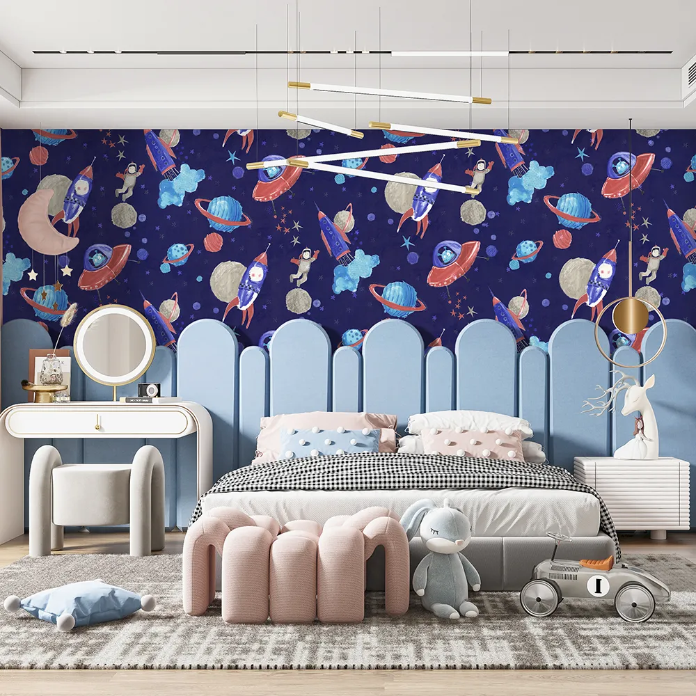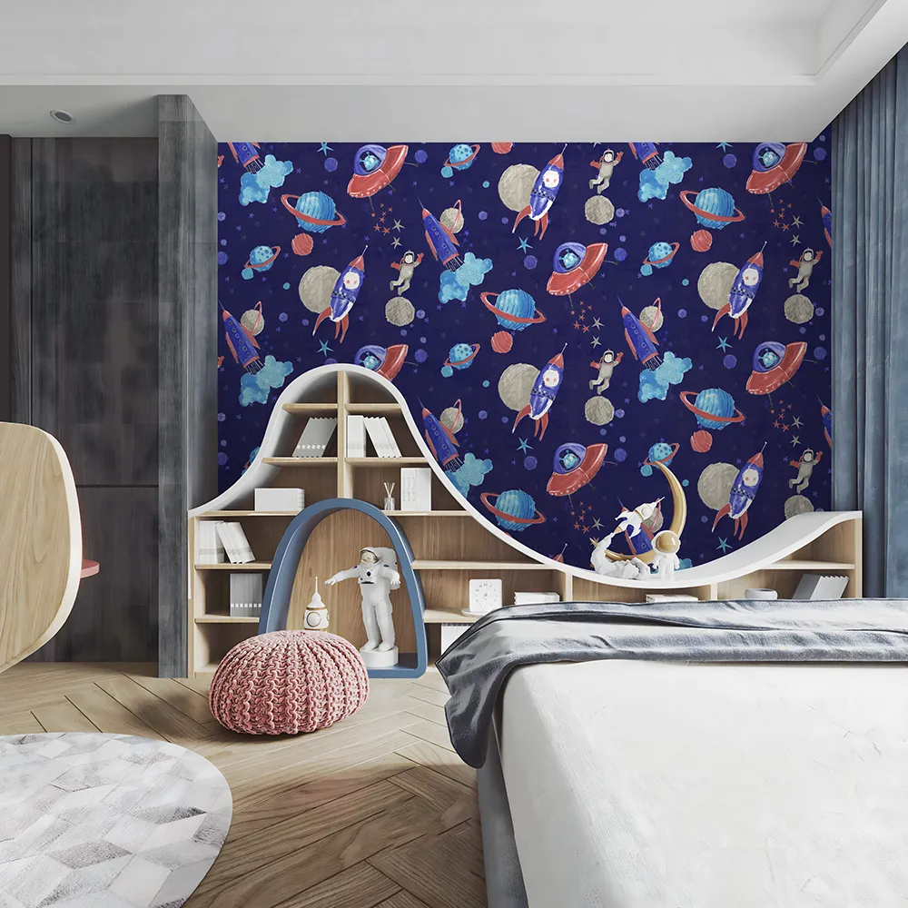 کاغذ دیواری کودک طرح کهکشان و فضانورد | سرمهای کد 12101 پمپو