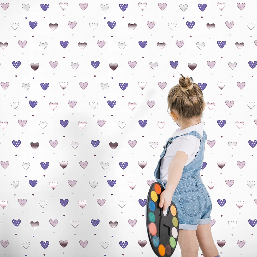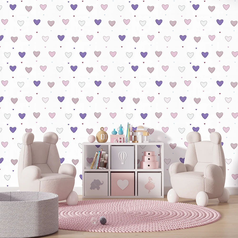 کاغذ دیواری کودک طرح قلبهای رنگی کد 12098 پمپو
