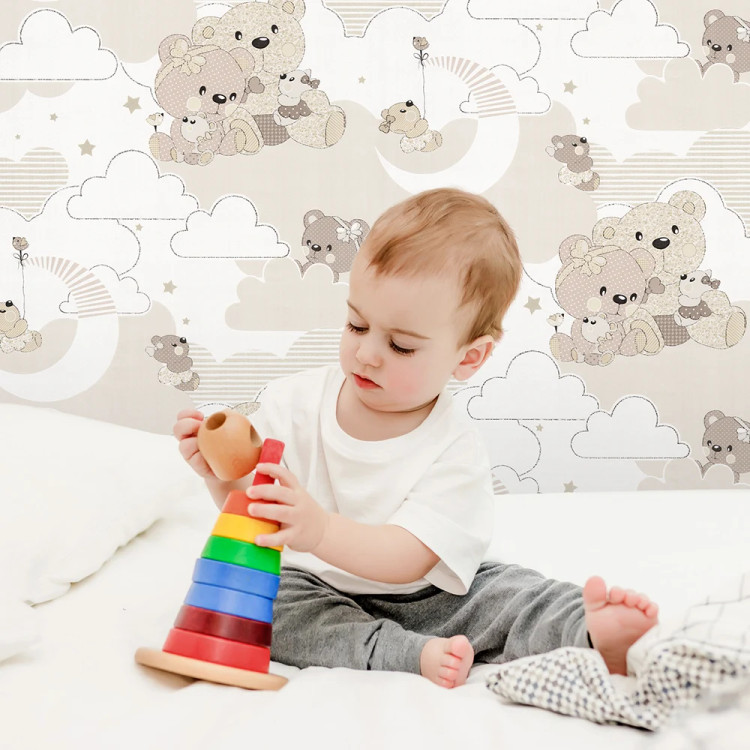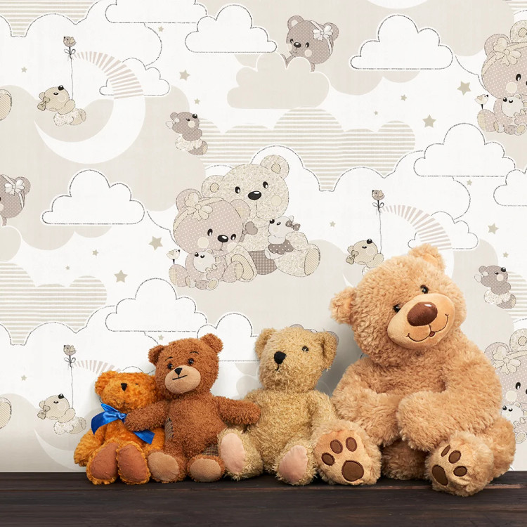 کاغذ دیواری کودک طرح خرسهای عروسکی | کرم / قهوهای کد 12073 پمپو