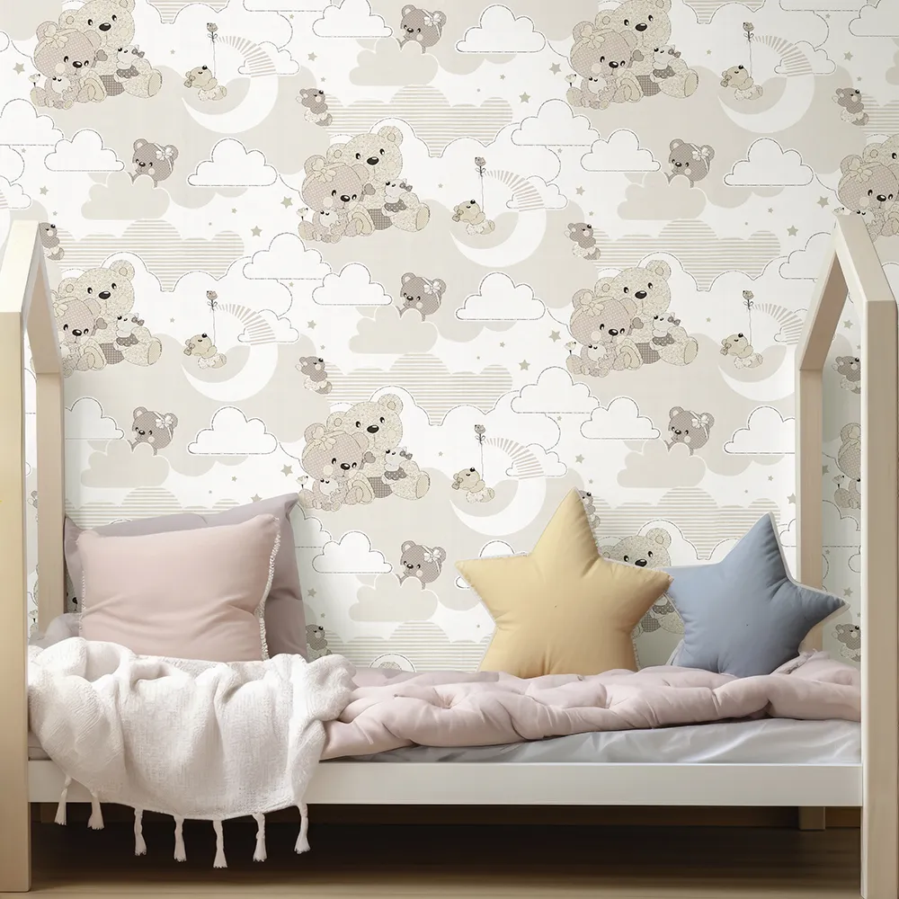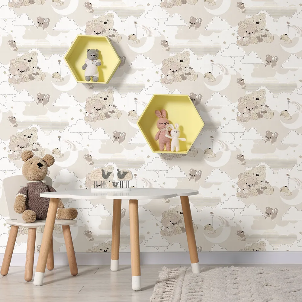 کاغذ دیواری کودک طرح خرسهای عروسکی | کرم / قهوهای کد 12073 پمپو
