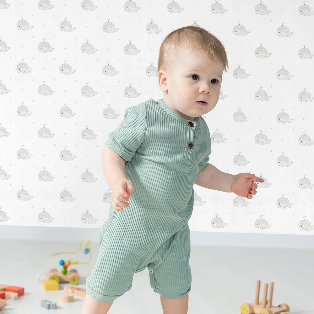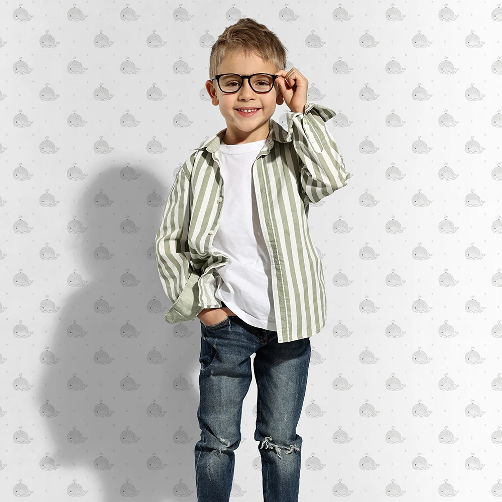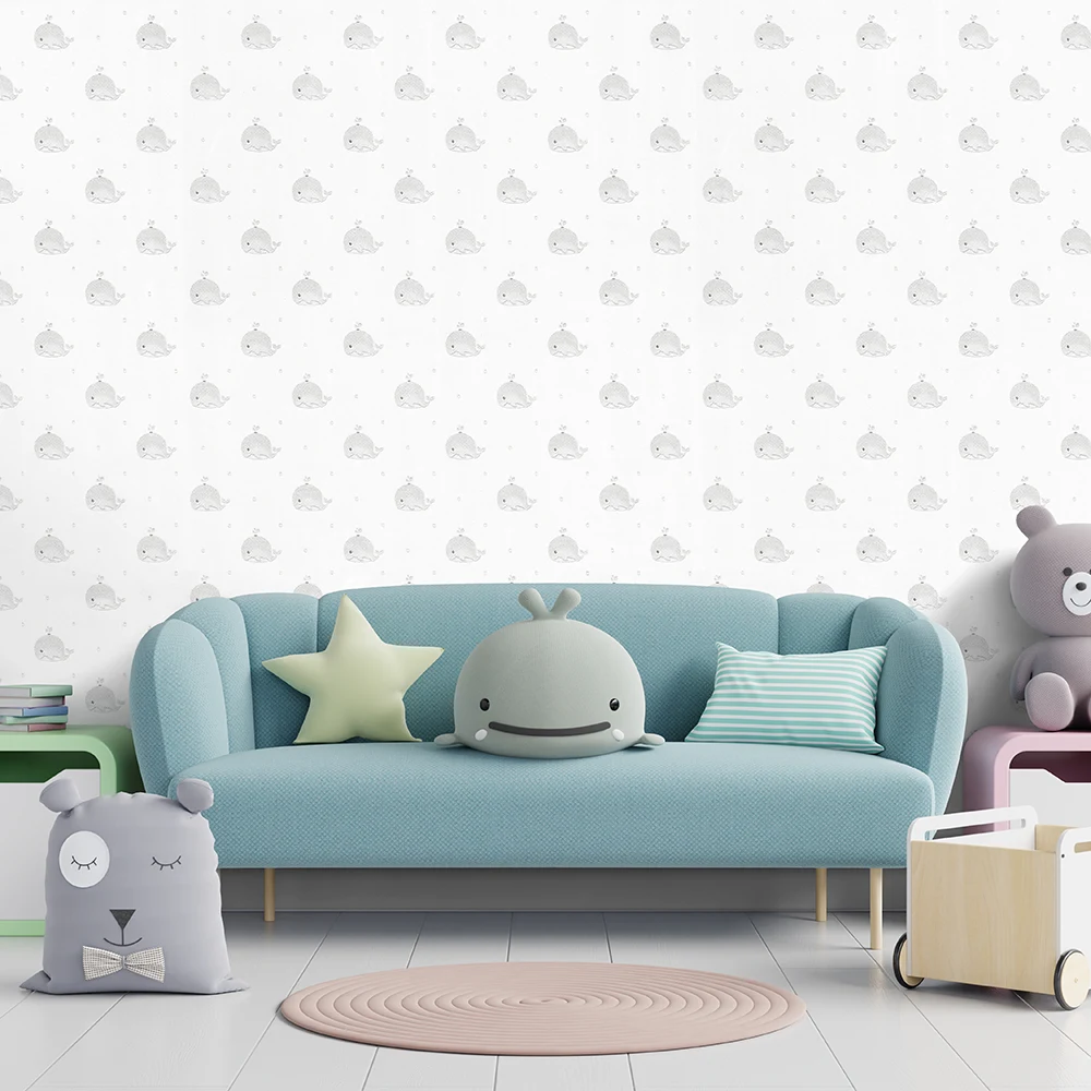 کاغذ دیواری کودک طرح نهنگ‌های دریایی | طوسی / سفید کد 12041 پمپو